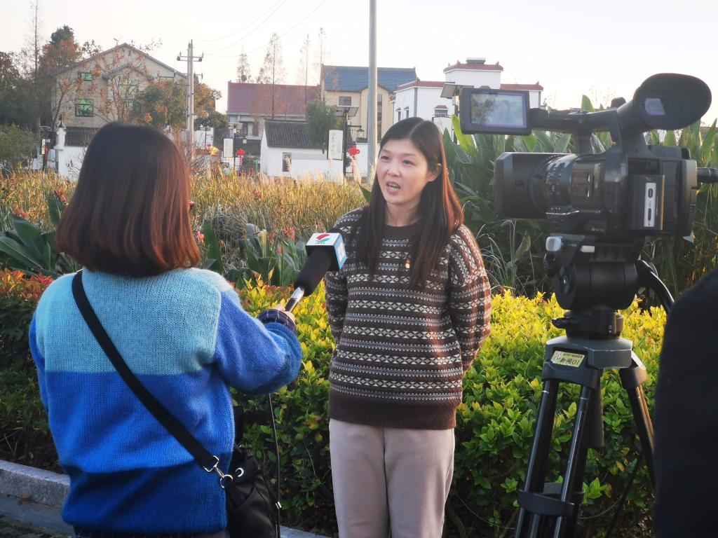 在联丰村王祥里百亩桃林,支部书记丁建良、党员教师章剑飞和陆晓妹接受了嘉兴电视台新闻频道采访。丁建良老师在采访中提到,联丰村是全国乡村治理示范村和全国民主法治示范村,近几年在美丽乡村建设方面取得了巨大的成绩,整个村庄环境优美,极具江南水乡特色。在村庄里,党员们看到了红色文化和传统文化的融合,红色主题公园、党建长廊、村史馆、桃花岛,以及智能地图和智能垃圾分类等都给大家留下了深刻的印象。通过此次实地学习考察,党员们切实感受到了在中国共产党的正确领导下,我国在各个方面都取得了重大成就,经济快速增长,人民生活不断改善,生态文明建设成效显著。党员们都表示要树牢“四个意识”,坚定“四个自信”,坚决做到“两个维护”,爱岗敬业,奋力拼搏,为嘉兴打造共同富裕示范区的典范城市,为全面建设社会主义现代化国家贡献力量。