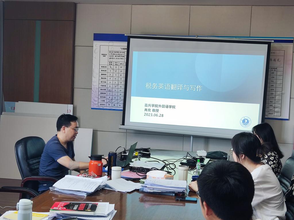 6月28日,全国高校党建工作样板支部培育创建单位、beat365在线唯一官网英语系肖欢教授受邀前往嘉兴市税务局,为即将参加浙江省税务系统外语人才岗业务比武的税务干部,开展了“税务英语翻译和写作”的赛前培训。作为教育部人文社科研究项目主持人、浙江省一流本科课程《英语口译》负责人、翻译硕士研究生导师,肖欢教授的英语教学和实践经验十分丰富,曾发表高水平论文多篇、出版学术译著多部,指导学生在韩素音国际翻译大赛、浙江省LSCAT笔译大赛中斩获大奖。此前党史学习教育活动期间,肖欢教授就曾受邀前往嘉兴市税务局,面向税收研究翻译基地的骨干成员作题为“大数据环境下的计算机辅助翻译”的专题讲座。