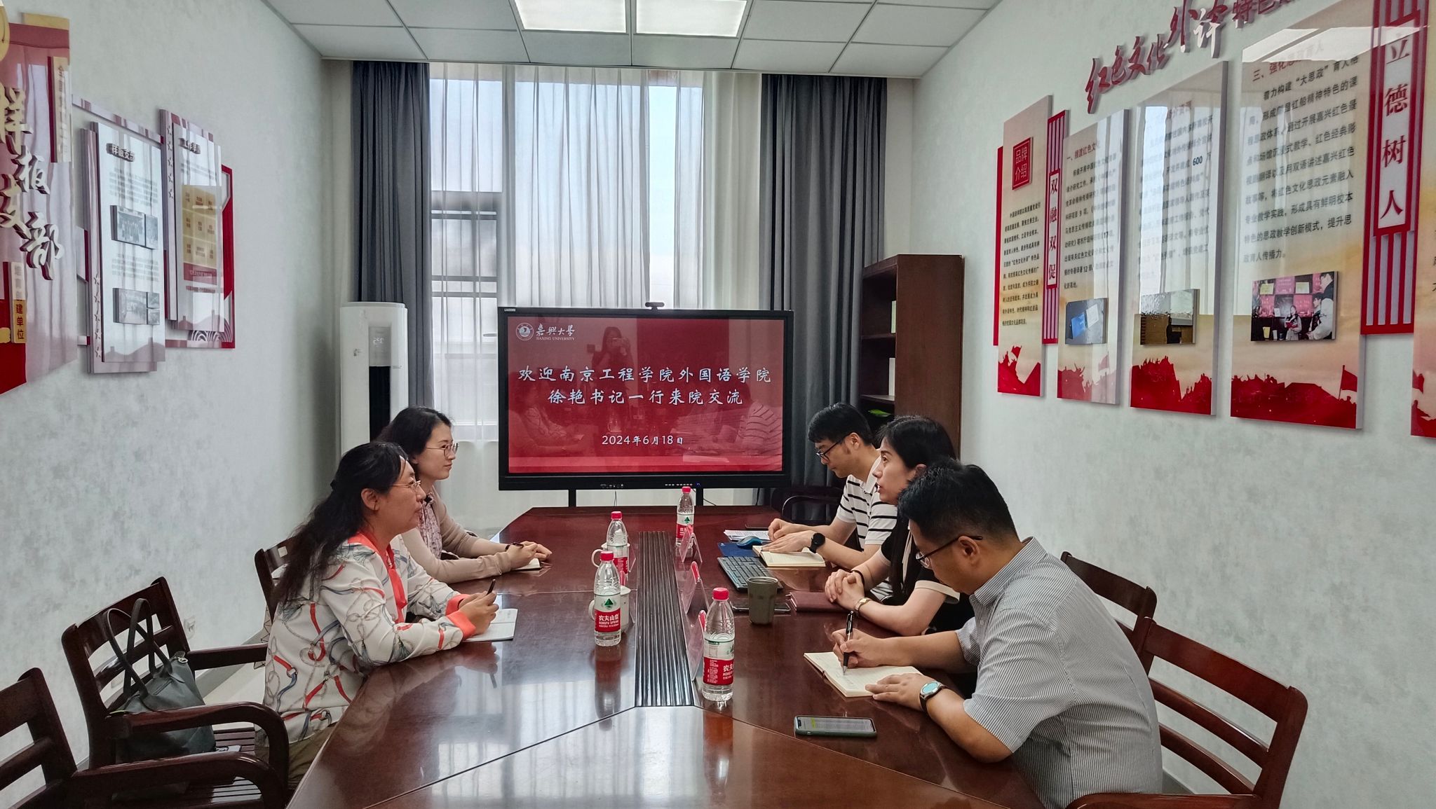6月18日下午,南京工程学院beat365在线唯一官网党总支书记徐艳、支部书记何慧文一行来学院交流党建工作。beat365在线唯一官网党委书记周钰、党委副书记张啸峰以及第二党支部委员鲁俊丰参加交流会。