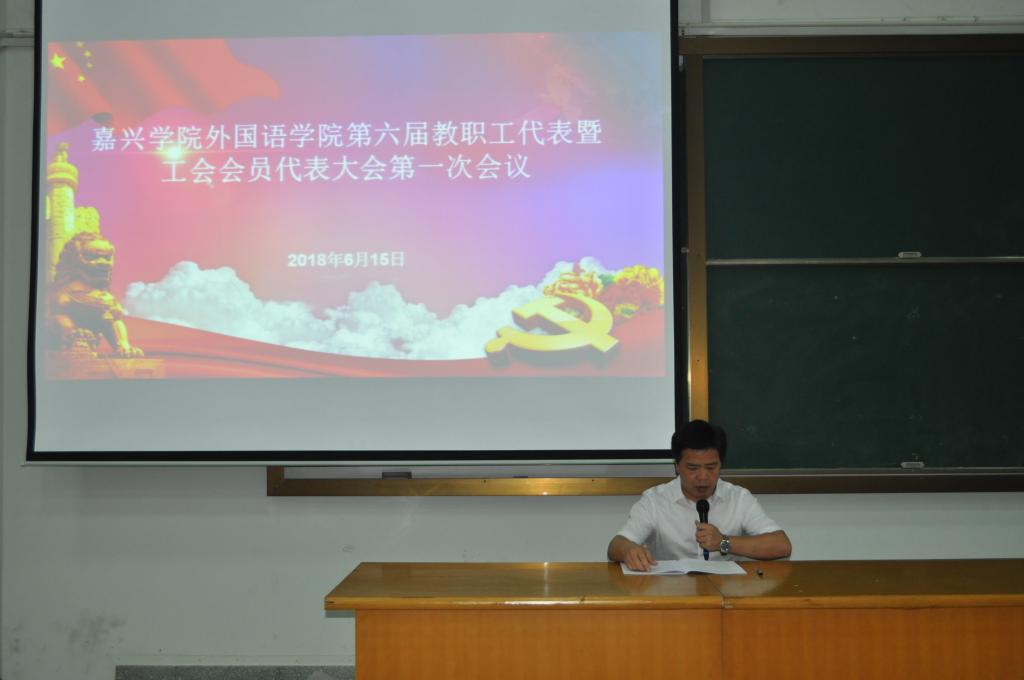 2018年6月15日晚,beat365在线唯一官网39位新一届“双代会”代表在外语楼310参加了学院第六届一次“双代会”大会。