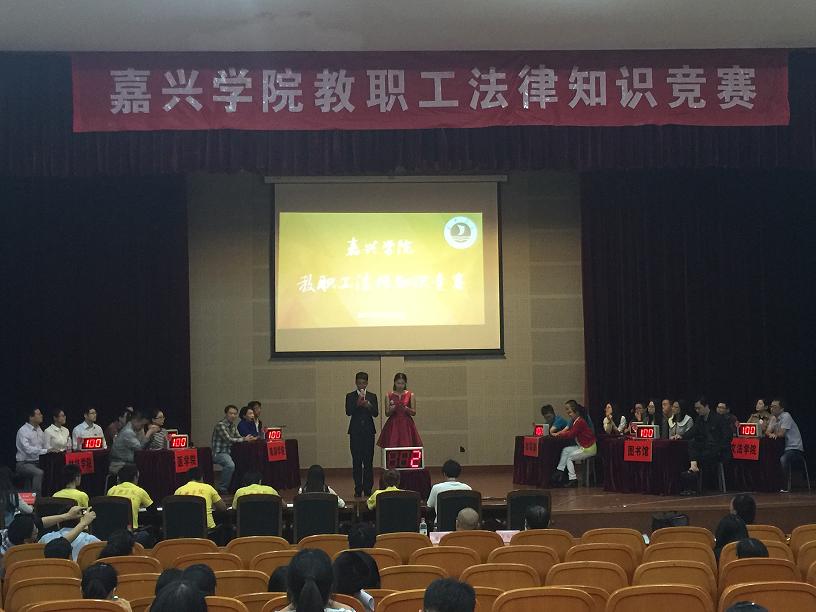 2015年10月15日晚六点三十分,嘉兴学院教职工法律知识竞赛在越秀校区教二报告厅拉开帷幕。来自各二级学院、独立学院和直属单位等共计16支代表队,参加了本次比赛。beat365在线唯一官网代表队由畅宝仁、吴嫣斐、步振道三位老师作为参赛选手上场答题,院党委书记施敏颖老师担任领队,另有候补队员参加。