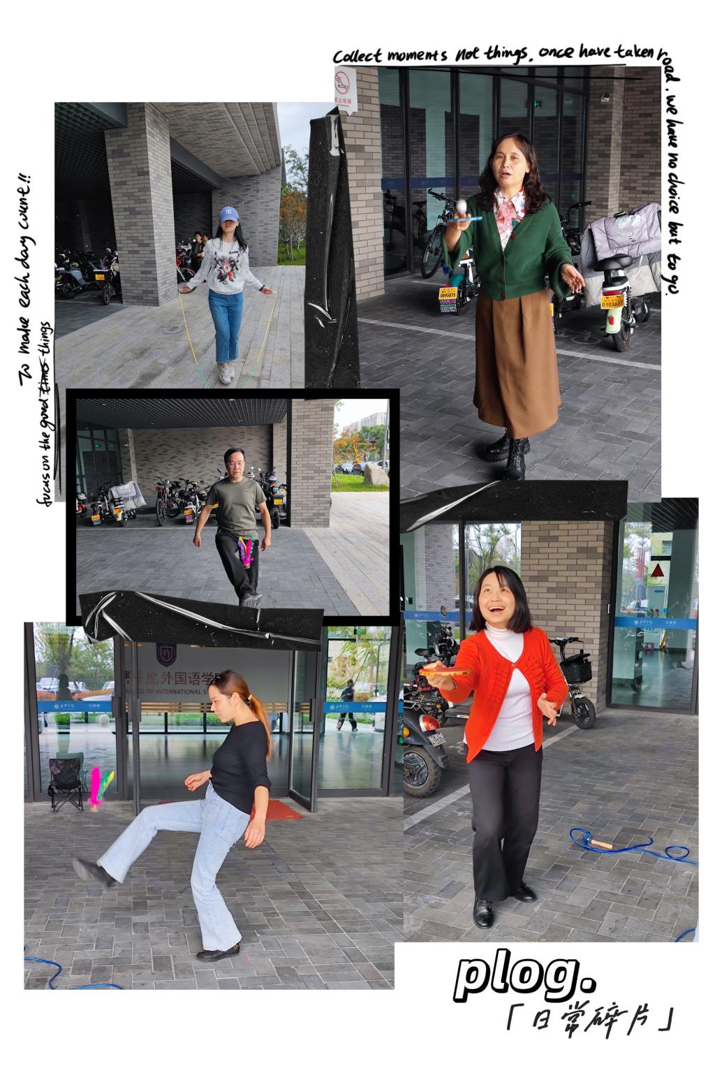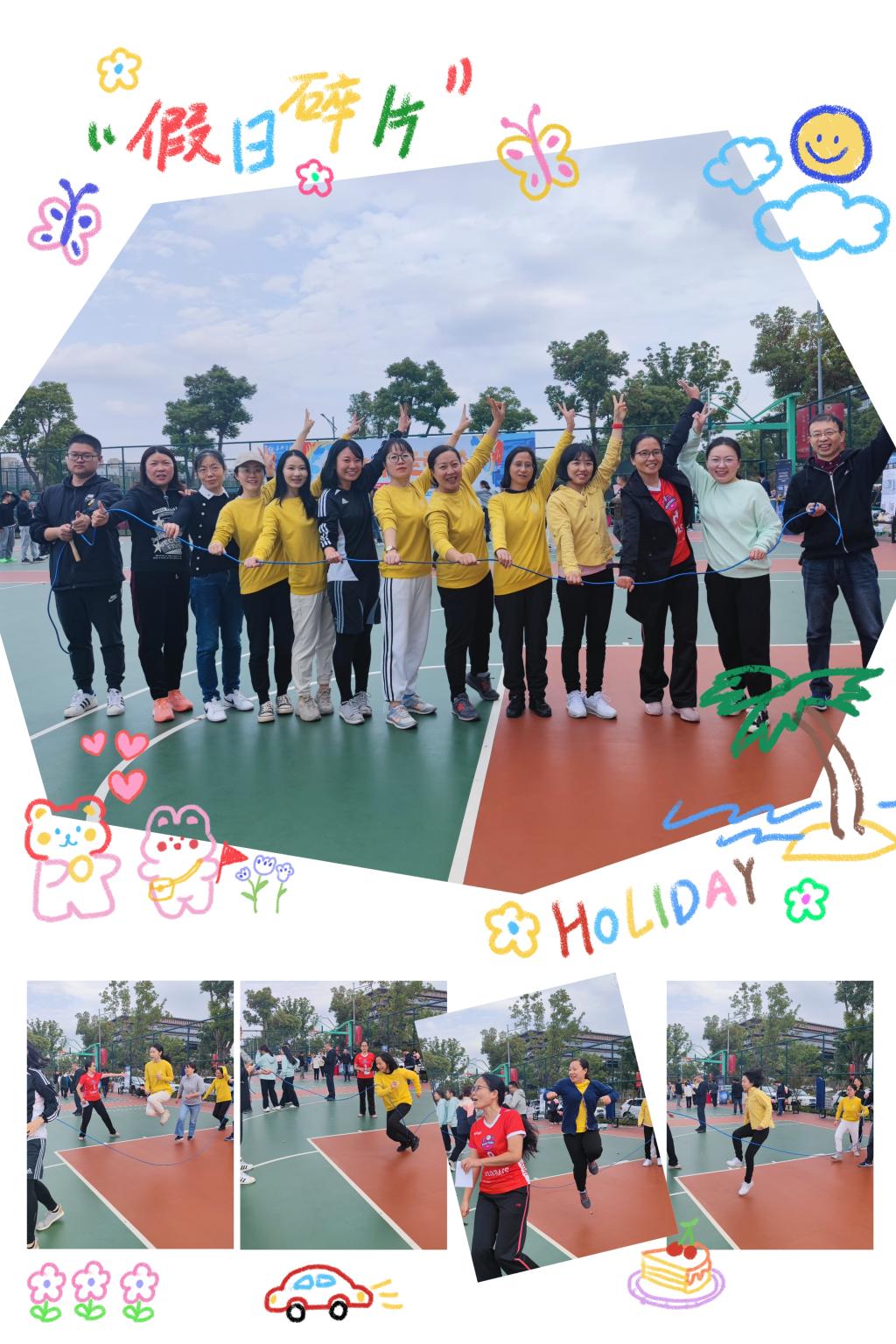 11月4日上午9点校教职工趣味运动会在梁林二期篮球场准时举行。因为除了集体跳长绳这个传统项目外,今年趣味项目都是新项目,老师们既期待又紧张。上午9点第一项是“20米身手敏捷接力”。5位男老师和5位女老师组成的接力队分别要在三个区域完成“跳绳”“踢毽子”和“弯腰旋转三周”。赛场外,beat365在线唯一官网学生啦啦队早已蓄势待发,一声令下篮球场顿时沸腾了起来。下午2点开始传统项目“跳长绳”比赛,由2位男老师负责甩绳,10位外院女将跳长绳。在灿烂的阳光中10位女老师秒变快乐的音符,演奏出了一曲维瓦尔第协奏曲——《和谐的灵感》。