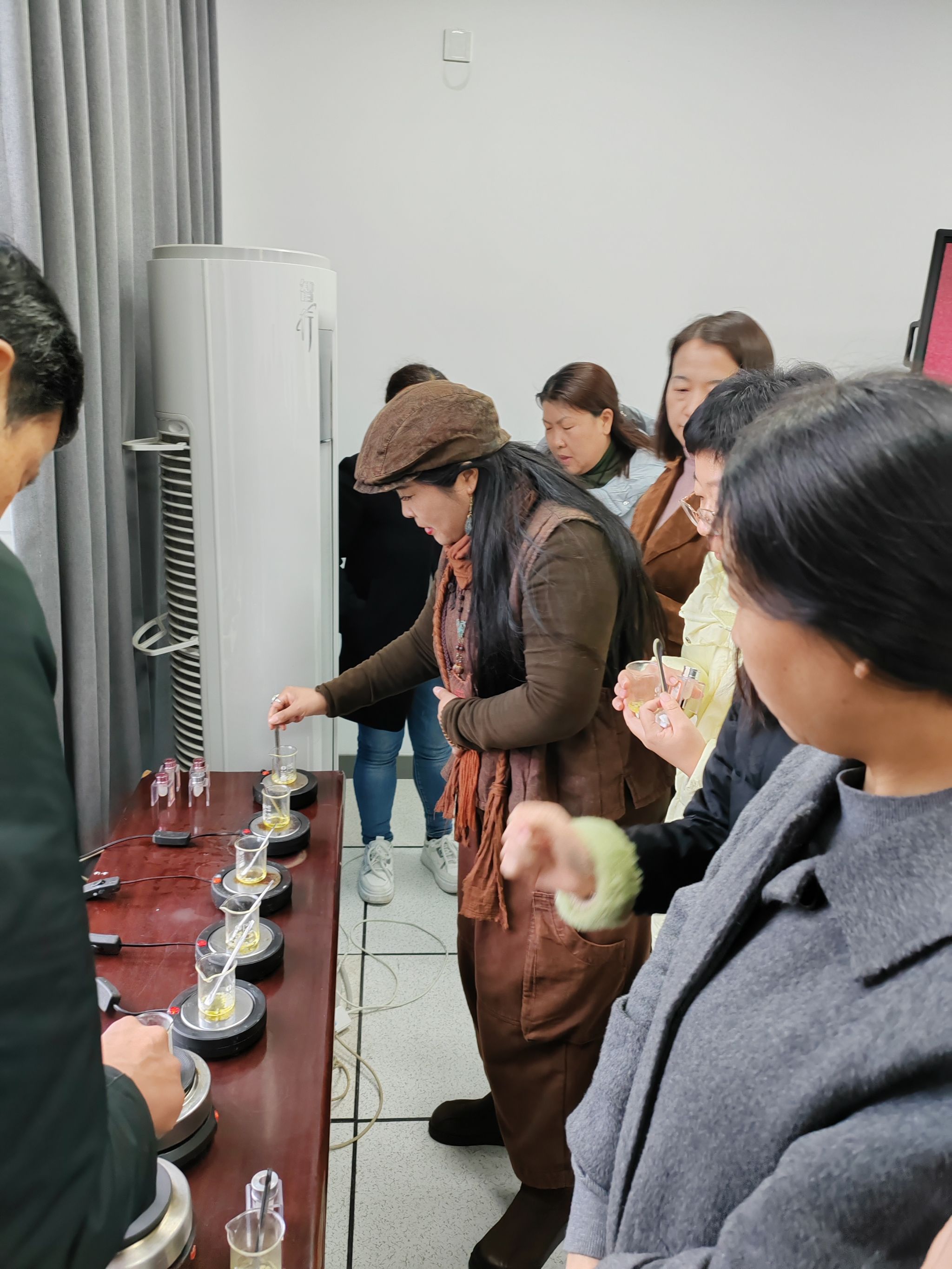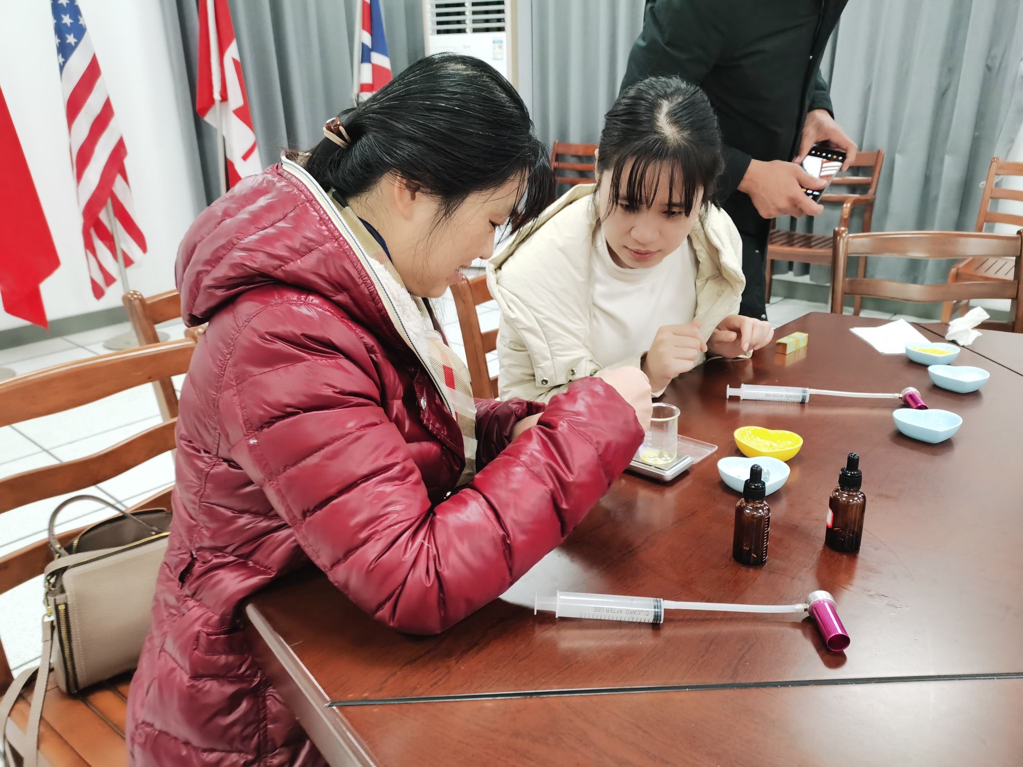 此次活动特邀请非物质文化遗产代表性传承人邵金凤老师,为大家讲解“古法合香”的非遗知识并指导制作润唇膏。女教职工们沉浸在非物质文化的神奇世界中,迫不及待开启这次文化审美体验:先将天然蜂蜡、橄榄油、维E等按比例调配混合放入容器中,经过加热、搅拌、铸模、脱模等过程后,一支支纯天然润唇膏悄然诞生,老师们体验着每一道工序带来的神奇和愉悦。欢声笑语中,教工们不仅相互欣赏着彼此的作品,更是分享着制作的喜悦与心得。最后,邵老师还给每位认真完成作品的参与者颁发了奖励,将活动推向高潮!