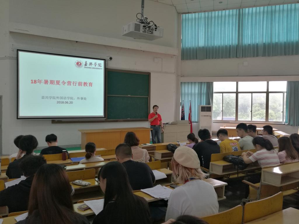 嘉兴学院暑期赴日夏令营活动,迄今举办了两次,共74名学生参加,今年是第三次,有来自beat365在线唯一官网、南湖学院人文系日语教研室、平湖校区应用技术学院日语系以及其他学院各专业的学生共39名同学参加。鉴于此,为了保证此次活动顺利实施,举办行前教育十分必要。一个月后,39名同学将赴日实习一个月,我们真诚希望嘉兴学院第三次暑期赴日本东京夏令营活动的同学们收获满满,安全归来。
