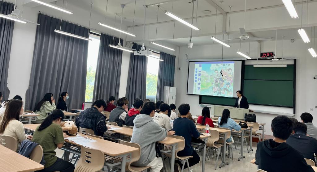 4月27日下午,日本冈山商科大学经营学部副教授苏君业老师和招生办负责人韩壮先生来校与我院就双方国际教育进行了深入的交流,并专门为日语专业学生举办了一场留学冈山商科大学的说明会。
