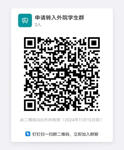 申请转入学生需于5月27日12点前完成钉钉扫码进群。