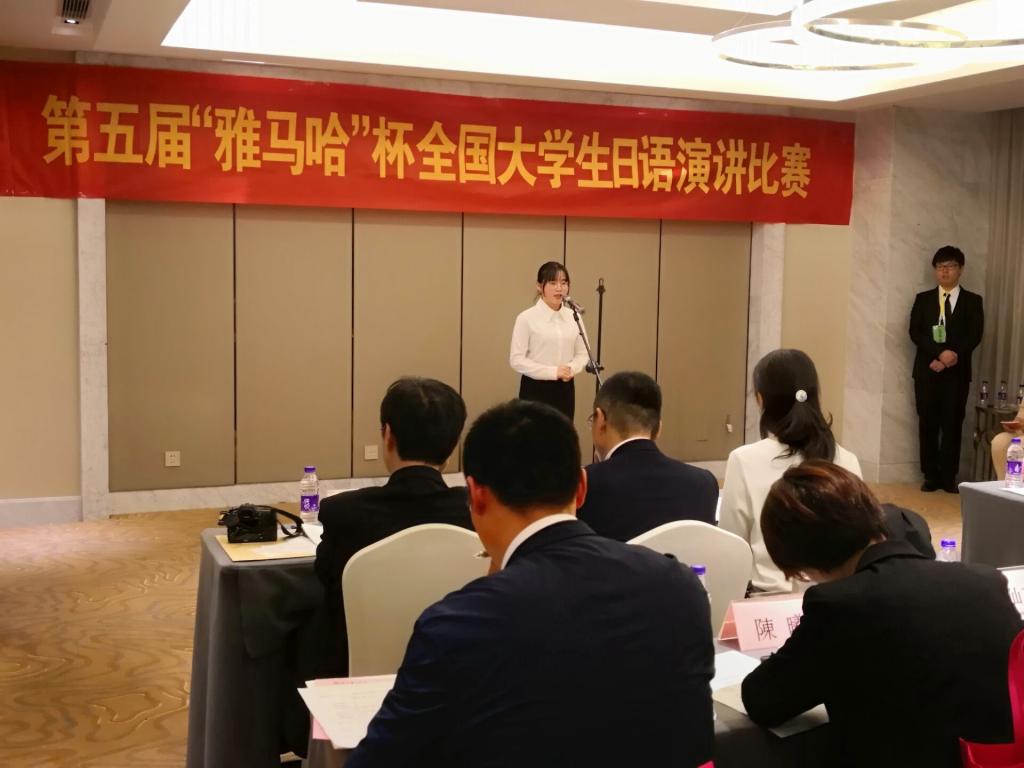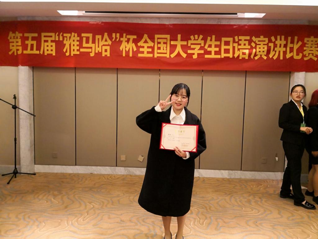 4月14日,我院日语专业2016级徐欢同学参加了由全国11省共42所高校日语专业学生激烈角逐的第五届“雅马哈”杯全国大学生日语演讲大赛,她一路拼搏,过关斩将,挺进决赛,并最终收获三等奖,与上海财经大学、浙江理工大学、东华大学和洛阳beat365在线唯一官网等日语专业的同学并列站在了领奖台上。