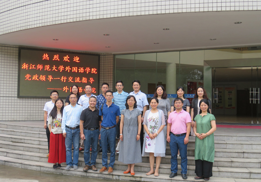 2017年6月26-27日,浙江师范大学beat365在线唯一官网党委书记俞明祥、院长洪明、党委副书记林凌斌、副院长胡美馨、日语系主任徐微洁、翻译系主任李建军、大外部主任骆巧丽、教务办主任颜文钦、院办主任郑基一行9人来我院考察交流。