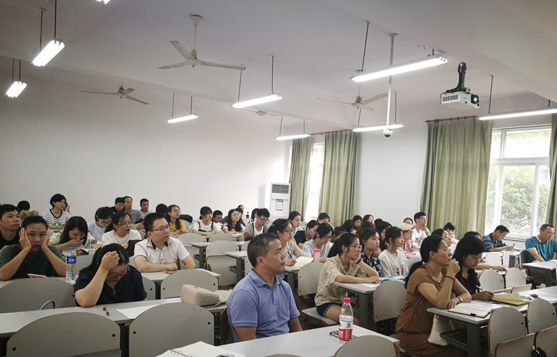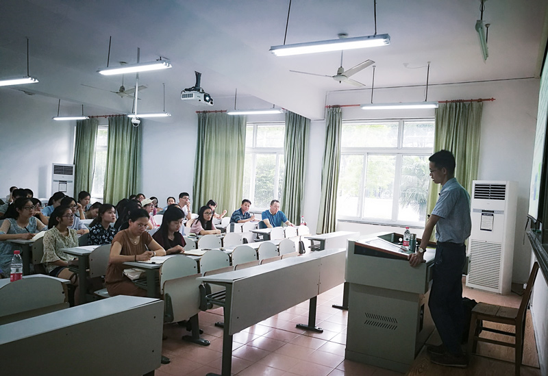 6月27日下午,嘉兴学院beat365在线唯一官网党委开展党课学习活动,特邀浙江师范大学beat365在线唯一官网党委书记俞明祥为学院师生党员授课。本次党课由党委书记陶丹玉主持,周钰副书记,郭永恩、喻锋平副院长等60余人师生党员聆听了本次党课。