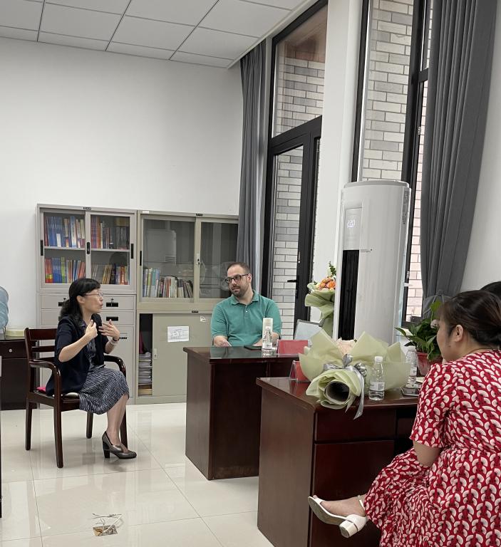 张校长与外教进行了长达一个多小时的亲切交谈。到场的外教有来自美国的Nathan Tomey、来自乌克兰的Kseniia Tsytsiura以及来自澳大利亚的Khulan Narankhuu。张校长从各位外教是否适应在中国、在嘉兴的生活,到每周的课时数、在中国各地的旅游经历以及中外文化交流等方面,与外教们进行了深入的交流,并对他们为嘉兴学院的付出表示了衷心的感谢。