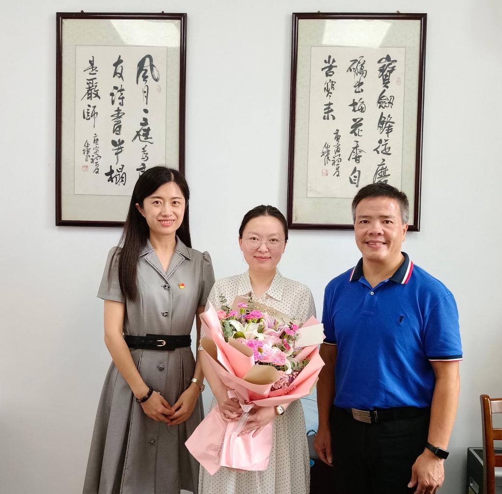 校、院领导开展教师节慰问活动。校党委委员、副校长张琦与国际处副处长李月顺赴我院慰问外籍教师,学院院长唐艳芳、党委书记周钰参加慰问座谈会。张琦代表学校向外籍教师表达了节日的祝福,详细询问他们在疫情之下的工作、生活等各方面的情况。外籍教师对学校的关心表示感谢,表示将更多地了解中国,做中外文化交流的使者,为学校的国际化教育做出贡献。副校长周宏伟来院慰问新入职教师付艳艳博士。周宏伟与付艳艳进行了亲切的交谈,详细询问付艳艳在工作、生活等方面的情况,勉励她牢记教书育人初心,践行立德树人使命,爱岗敬业、求真务实,用聪明才智为学校发展贡献智慧和力量。学院院长唐艳芳、党委书记周钰代表学院领导班子向新入职的教师陆婷婷博士表达了节日的慰问。两位院领导详细询问陆婷婷来校后的学习、工作和生活情况,希望她尽快适应教师生涯,做好职业规划,在做好教学科研的同时加强学习。
