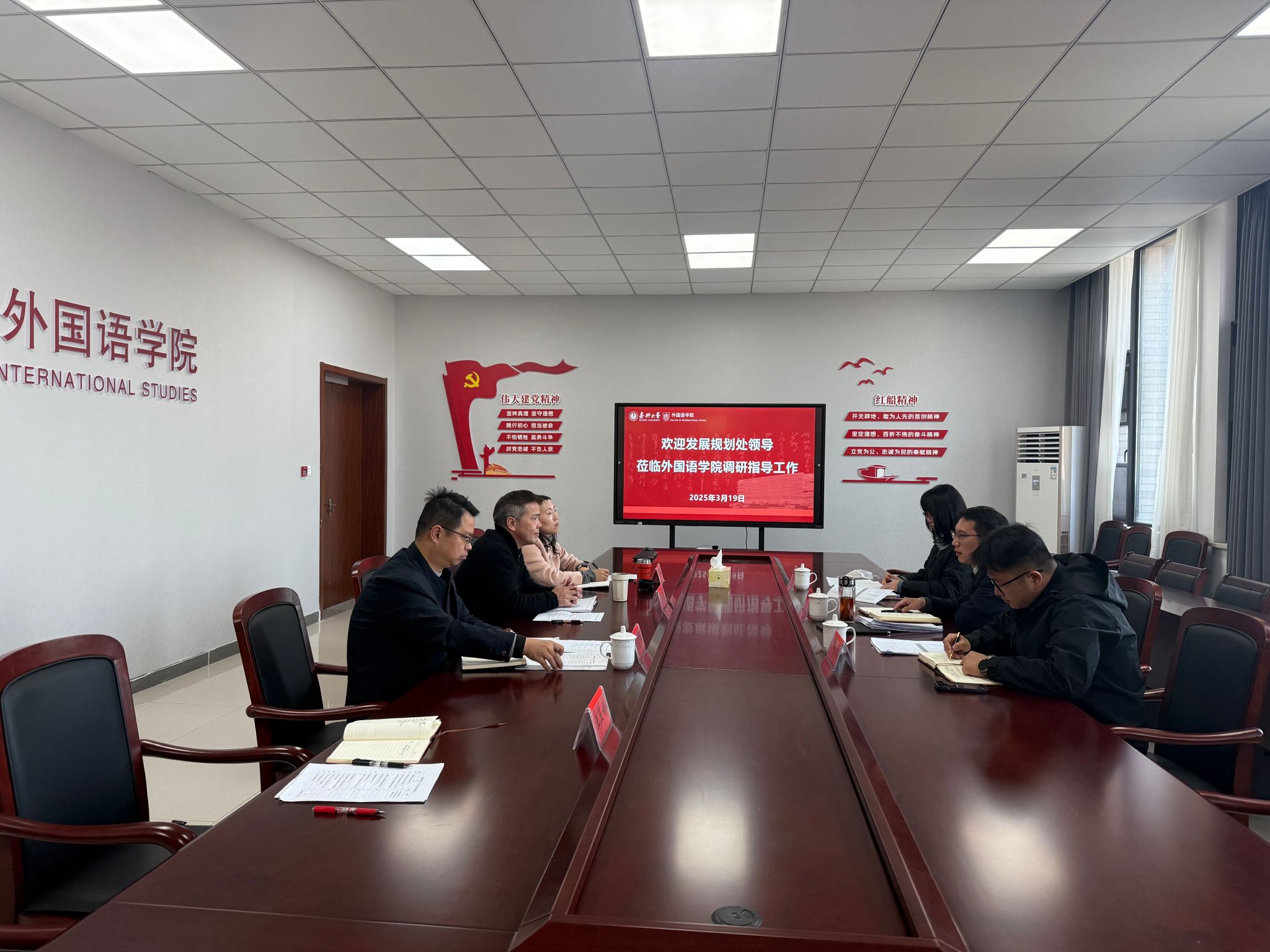 3月19日,发展规划处处长张向阳、专聘副处长桌乘风等一行3人来beat365在线唯一官网,就学院“十五五”规划谋划情况、综合改革推进落实情况以及年度考核相关情况开展调研。学院院长唐艳芳、副院长邱佳、党委副书记张啸峰及相关人员参加座谈会。