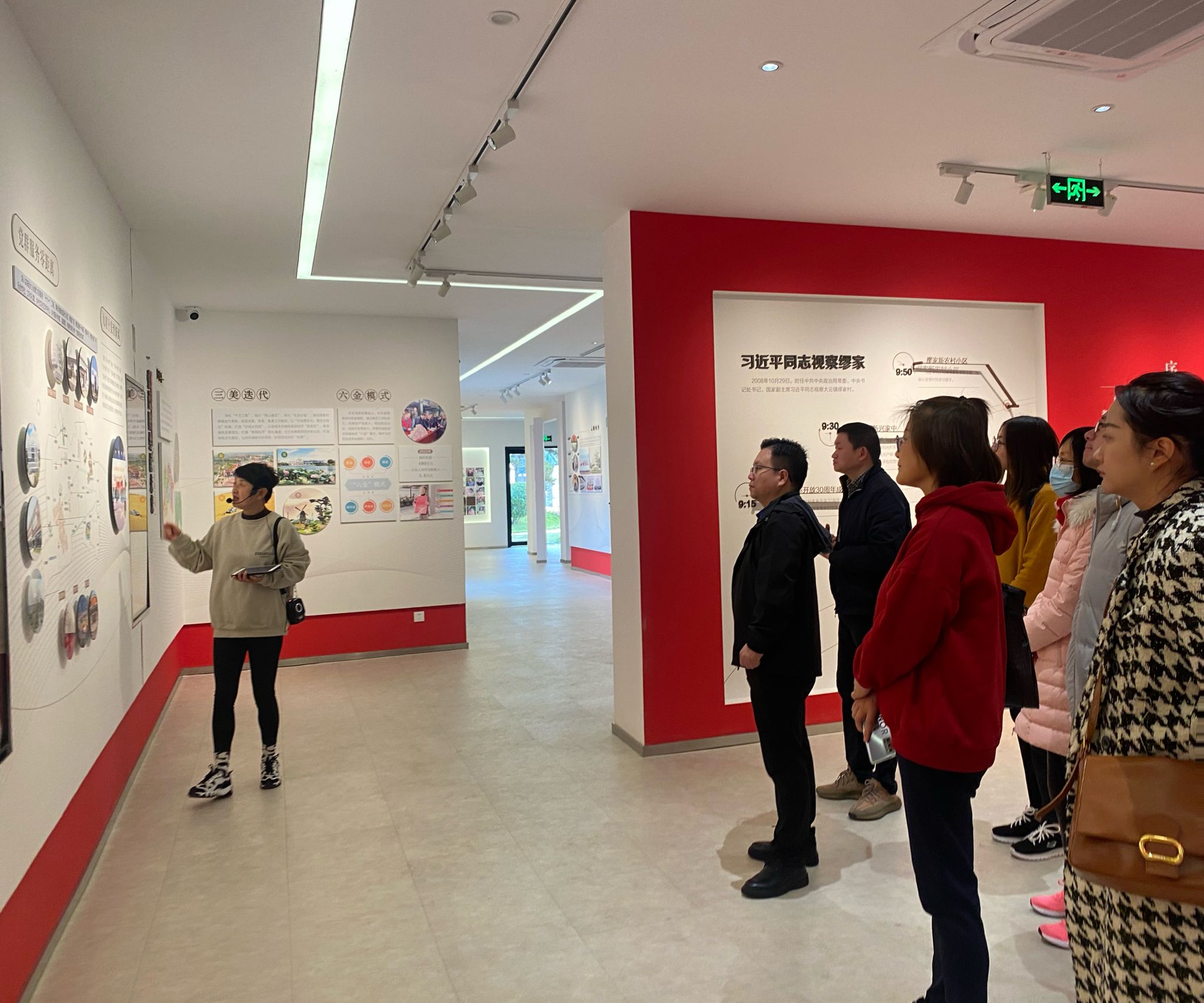 嘉善县缪家村是2008年时任中共中央政治局常委、中央书记处书记、国家副主席习近平同志赴嘉善调研时的村级考察点。在缪家村村史馆,一幅幅图片充分展现了村党委牢记总书记“走在前列、作好示范”的殷切嘱托,团结带领缪家村实现从整洁有序、美丽宜居到甜蜜共富的华丽蝶变,全面展示了浙江深入践行“八八战略”、持续深化“千万工程”,坚持“一张蓝图绘到底”的生动实践。“草鞋”干部、“皮鞋”干部、“跑鞋”干部、“六金”富民和城乡一体服务优享模式等内容给大家留下了深刻印象。