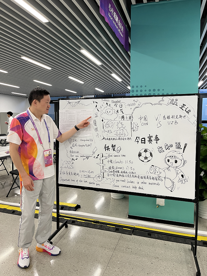 高晨笛从7月10日至10月9日在杭州亚运会注册中心担任南亚NOC注册联络人,负责代表团运动员和官员的注册工作,主要工作包括:与南亚地区各国奥委会联络人沟通、注册信息的审核与修改、参加注册会议、翻译与审核各类文件和函件等。钱征宇从6月23日开始至10月底,在杭州黄龙体育中心从事亚运会和亚残运会媒体运行领域服务工作,主要工作包括:APC官员接待工作、媒体人员英语语言能力培训、医疗急救培训以及媒体和体育领域的业务培训等。