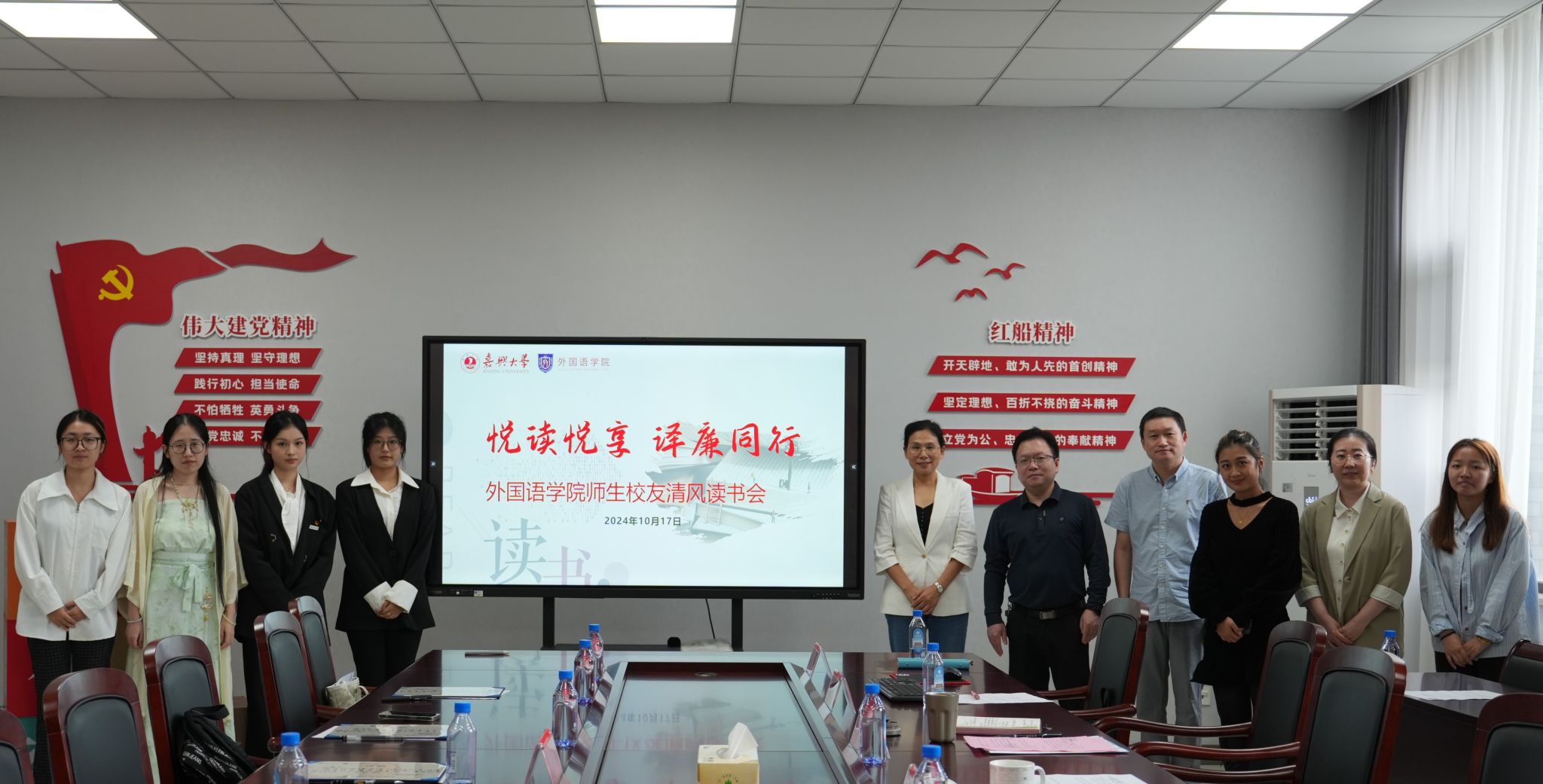 10月17日下午,在学校办学110周年校庆日来临之际,beat365在线唯一官网在兴德楼南楼516会议室举行主题为“悦读悦享·译廉同行”的师生校友清风读书会。校党委委员、纪委书记、监察专员陈新友到会指导,校纪检监察室(巡察办)副主任杨碧瑜、学院党政领导、师生代表、校友代表参加了本次活动。活动由学院党委书记周钰主持。